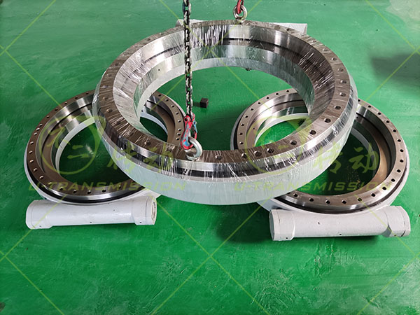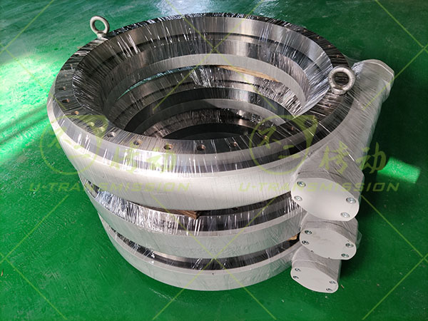 WEA35精密蜗轮蜗杆回转驱动客户用在重型设备上,要求回转精度≤0.05°,客户需要自锁,减速比大,高输出扭矩,所以给客户设计了WEA35精密蜗轮蜗杆驱动,涡轮采用42CrMo调制,齿淬火,蜗杆采用钢蜗杆,齿淬火,这样设计能提高单齿承载,最大限度提高驱动的输出扭矩。客户要求反向自锁,只能由蜗杆带动蜗轮,而不能由蜗轮带动蜗杆,这样在设备关机或者无动力的情况下仍能保证设备静止不动,非常安全可靠。蜗杆传动相当于螺旋传动,多齿同时啮合,传动平稳、噪音很小。