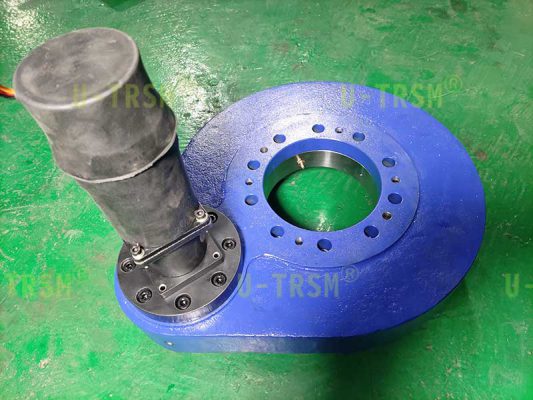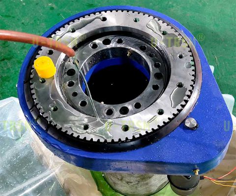 为此william威廉中文官网给回转驱动可能会进水的位置加装了O型圈,防止驱动进水。客户使用24V直流减速电机驱动回转驱动旋转,输出转速2转/分钟,william威廉中文官网负责给客户配套减速电机,减速电机同样采用了防水设计,电机的外面包裹了防水橡胶套,增加了电机的防水性能。