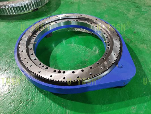 S-II-O-0541直齿回转驱动应用在工业自动化转台上,是水平安装使用。II系列回转驱动采用模数6的齿,回转支承的厚度比I系列厚,因此回转驱动的抗倾覆和稳定性提高很多。模数6的齿单齿承载比模数4大,所以II系列的输出扭矩更大,抗冲击性更好。