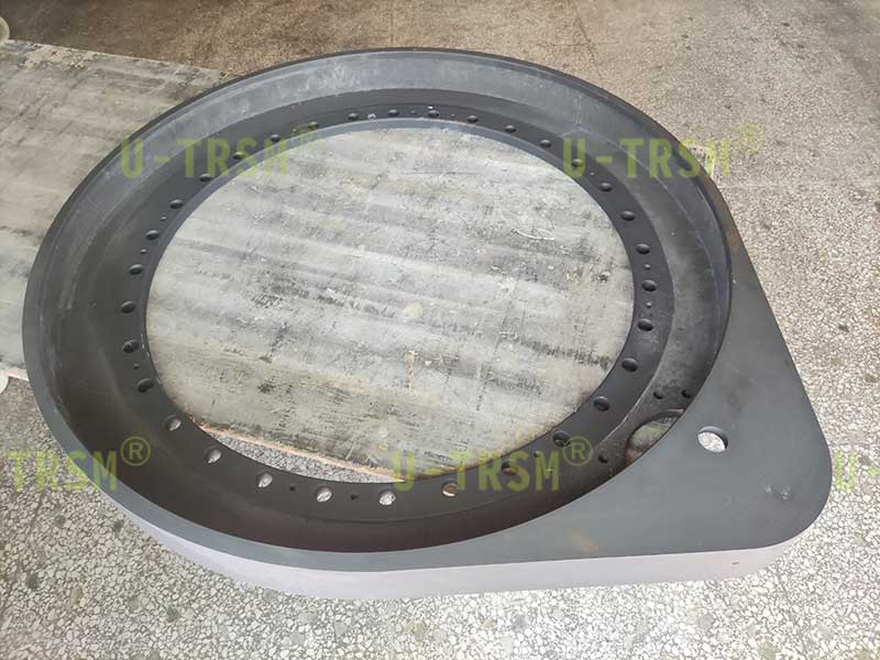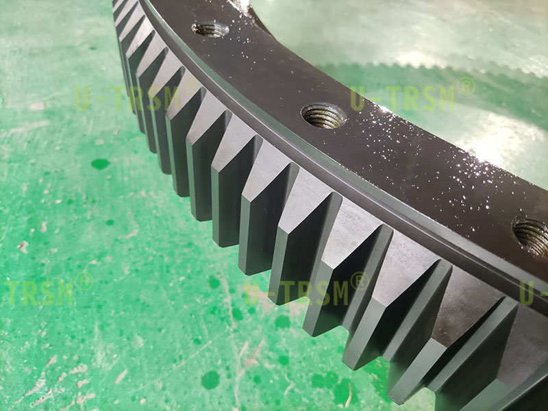 回转支承零游隙,跳动0.03mm,齿淬火后进行磨齿,客户要求回转支承整体进行锰磷化处理,为了保证成品的精度,我们采用了特殊的工艺,确保磷化后回转支承的精度。