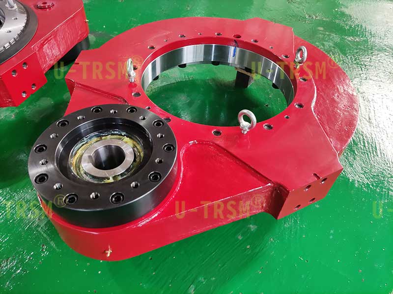 S-III-O-0510 竖直支撑齿轮式回转驱动使用在工业自动化领域,水平安装使用,但是固定回转驱动的螺栓不能在回转驱动底部,只能在回转驱动侧面,客户通过壳体侧面的螺栓孔固定回转驱动,回转驱动外圈带动设备的旋转部分旋转。使用环境多粉尘,要求回转驱动具有防尘性能。