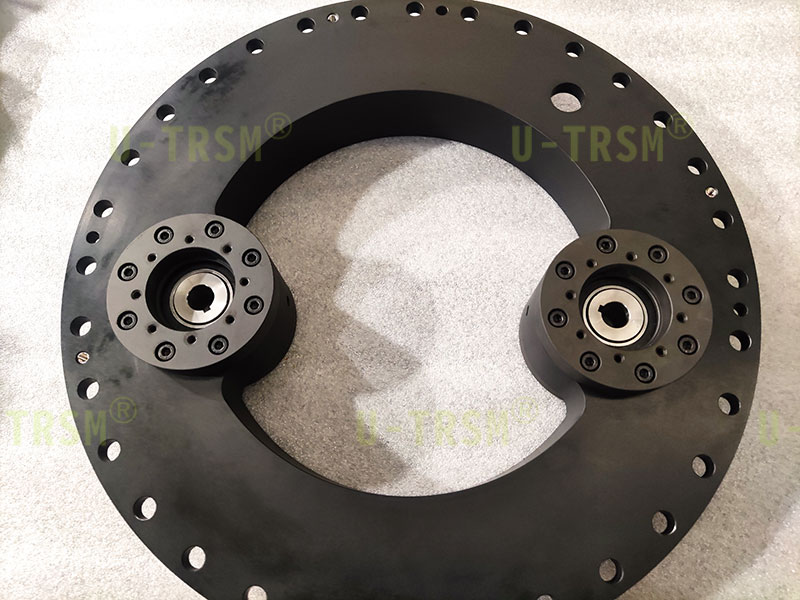 S-I-I-500 精密双齿轮磨齿内齿回转驱动应用在特殊设备上,回转驱动采用零游隙设计,齿淬火后磨齿,双齿轮同时驱动回转驱动内齿圈。双齿轮传动跟单齿轮传动相比具有输出扭矩大,传动精度高,传动平稳,双齿轮减小齿间隙等优点。