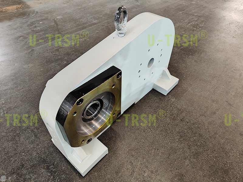 立式安装两级传动式齿轮回转驱动应用于自动化设备上,由于客户要求竖直安装使用,因此william威廉中文官网的设计师把回转驱动与底座集成一体化设计。立式安装适合大多数工况,节省安装空间,便于安装及加工,使得结构更紧凑,更加的模块化设计,两级传动增加中心距,使得输入端与输出端远离,便于安装。