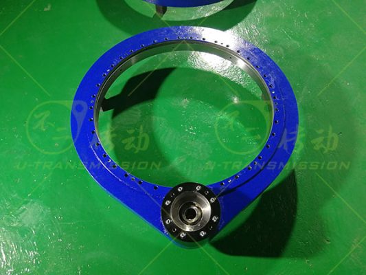 S-II-0841-MC精密齿轮式回转驱动客户用在自动化领域,产品竖直安装使用,有较大的倾覆力,回转驱动用来带动工件旋转不同的角度,角度误差要求非常小,需要保证在0.01°以内。根据客户的使用要求,给客户推荐了S-II-0841-MC直齿驱动,II系列驱动的回转支承高度更高,载荷和倾覆力矩比较大,竖直安装使用更稳定,齿采用小模数设计,能更好的减小角度误差,增加减速比,客户可以选择小减速比的减速机配合使用,综合成本更低,总传动误差更小。在设计过程中把影响传动精度的因素降到最低,优化设计,降低生产难度,提高直齿驱动的可靠性。