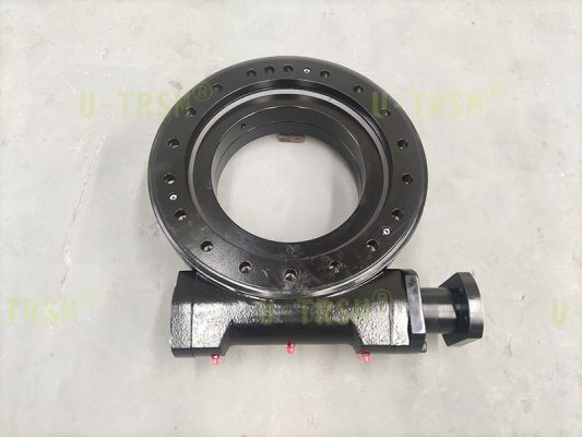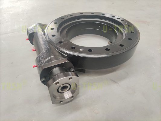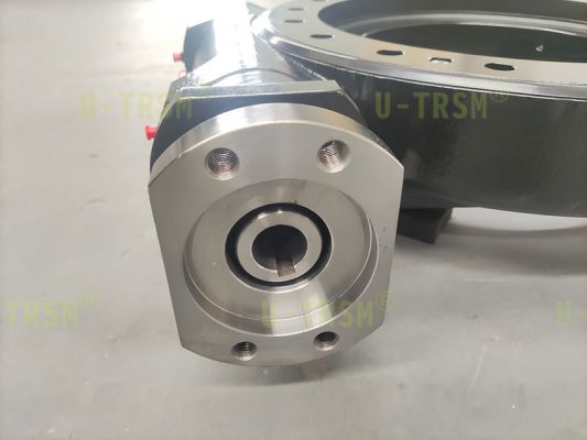 液压马达具有转速低,输出扭矩大,转速和扭矩可调等特点,跟大减速比的蜗轮蜗杆回转驱动搭配使用,一般都是直连使用的,不需要加额外的减速机。