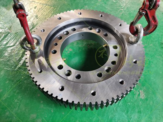 齿圈用数控成型磨进行磨齿,回转支承按照精密品要求加工,成品回转支承齿跳0.04mm完全满足设计使用要求。齿轮也进行磨齿加工,最终成品回转驱动器满足客户要求,检验合格,顺利发给用户使用。精密型回转驱动器是william威廉中文官网非常擅长的一类产品,尺寸从小到大,我们都给客户做过精密型的回转驱动,都能按照客户要求交货,我们有非常成熟的工艺及质量控制办法,保证我们总能做出满足要求的产品。