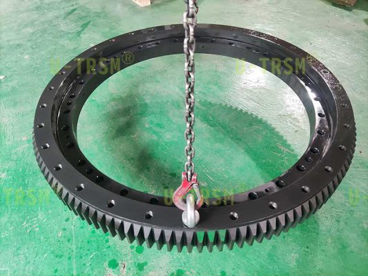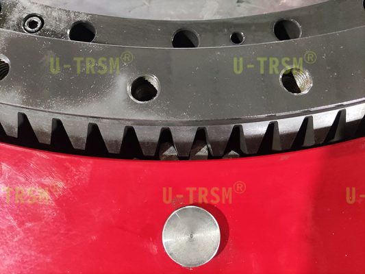 回转支承零游隙,跳动0.03mm,齿淬火后进行磨齿,客户要求回转支承整体进行锰磷化处理,为了保证成品的精度,我们采用了特殊的工艺,确保磷化后回转支承的精度。