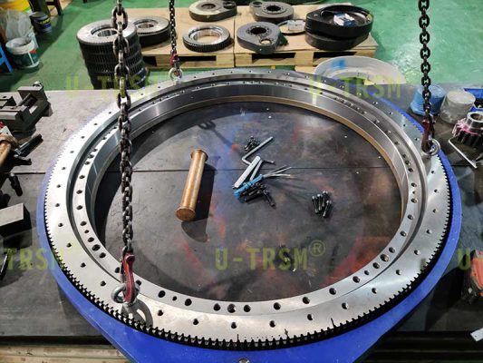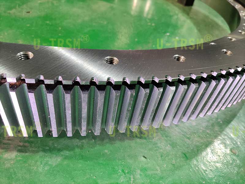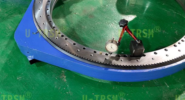 在生产过程中把回转支承的齿跳控制在0.05mm以内,小齿轮齿跳控制在0.03mm以内,保证齿跳是保证齿间隙的前提,加工完成后,装配调试同等重要,精密产品需要经过反复的调试检测,直到产品满足客户的要求为止。
