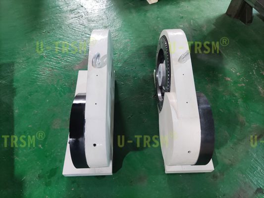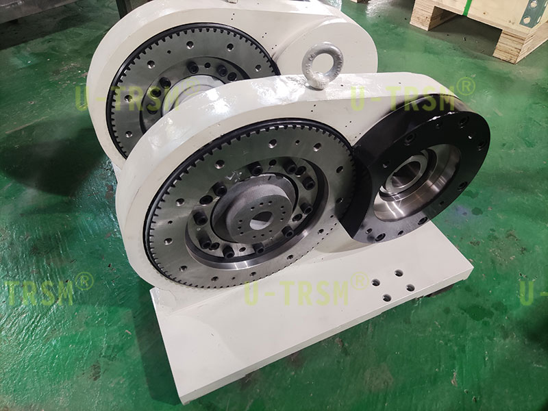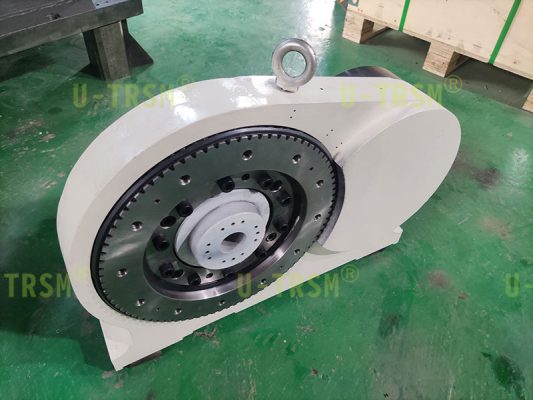 S-I-O-0311 带底座竖直安装使用的直齿回转驱动应用在智能制造领域。客户要求回转驱动竖直安装使用,受安装空间和配合精度的影响,回转驱动需要集成安装底座,这样设计的好处是减少连接配合次数,提高设备可靠性,并且结构紧凑节省安装空间,整体加工保证高精度,降低制造成本。