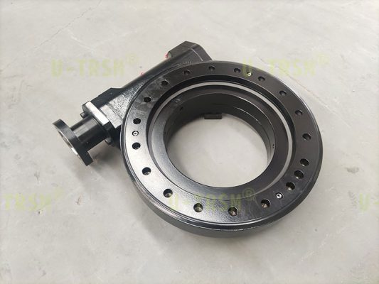液压马达具有转速低,输出扭矩大,转速和扭矩可调等特点,跟大减速比的蜗轮蜗杆回转驱动搭配使用,一般都是直连使用的,不需要加额外的减速机。