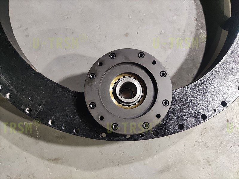 该回转驱动采用零游隙设计,齿淬火后进行磨齿加工,内齿回转驱动成品可以达到跳动≤0.03mm,整圈最大齿间隙≤0.15mm,回转驱动空载启动力矩120N.M,旋转灵活无卡滞现象,完全满足使用要求。