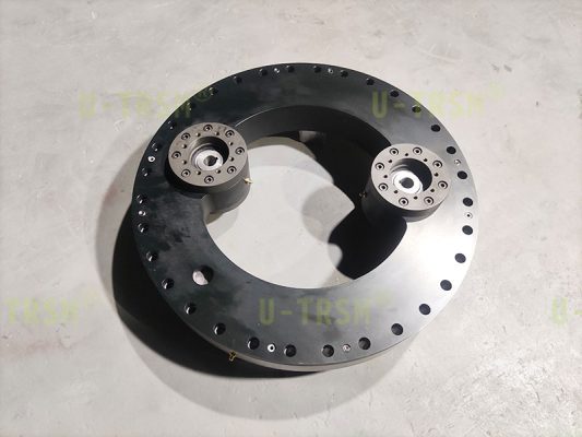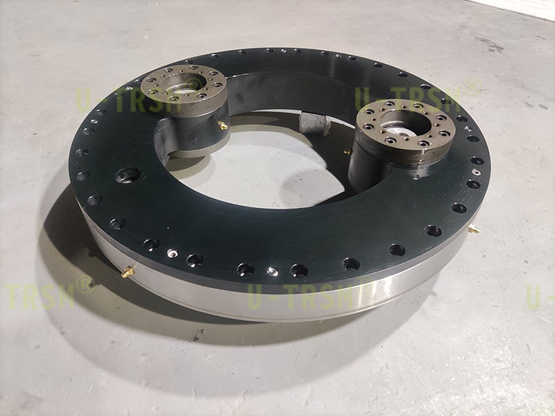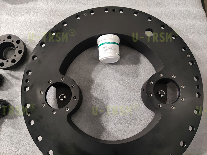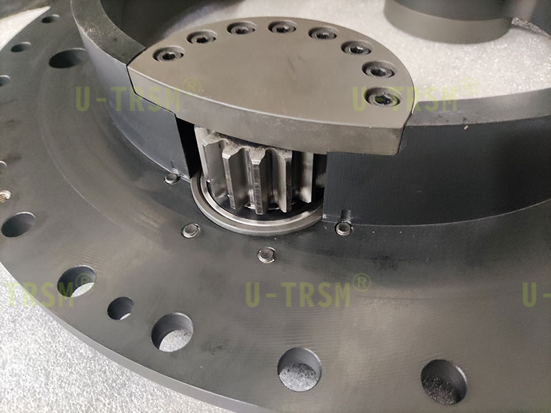 S-I-I-500 精密双齿轮磨齿内齿回转驱动应用在特殊设备上,回转驱动采用零游隙设计,齿淬火后磨齿,双齿轮同时驱动回转驱动内齿圈。双齿轮传动跟单齿轮传动相比具有输出扭矩大,传动精度高,传动平稳,双齿轮减小齿间隙等优点。