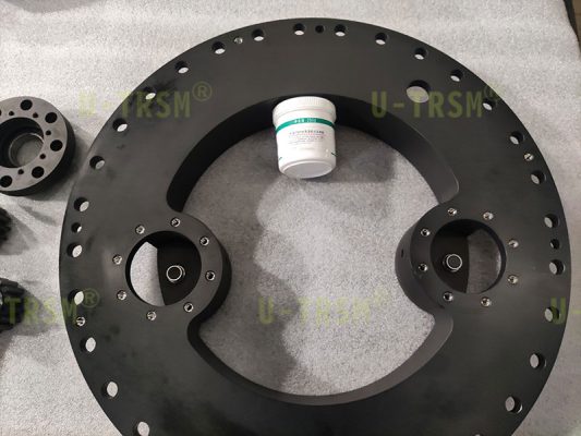为了减轻回转驱动的重量,壳体采用工业硬铝加工,表面做黑色阳极氧化处理,螺纹孔全部加装不锈钢钢丝螺套,小齿轮采用可更替设计,方便意外损坏时更换。