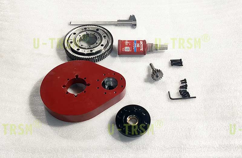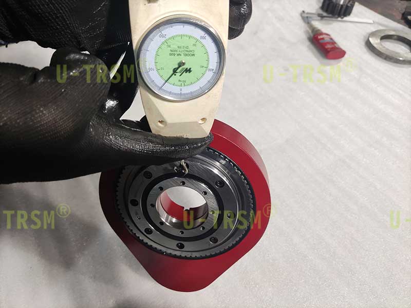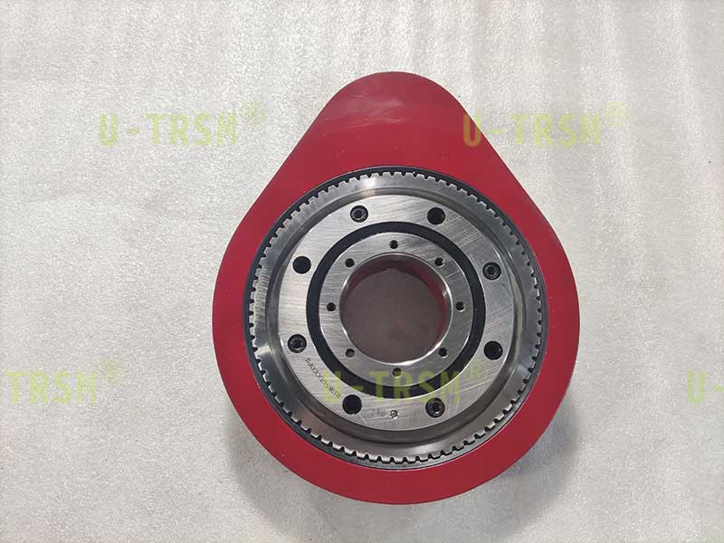 该回转驱动采用高精度交叉滚子轴承,轴向径向跳动5um负游隙,满足了客户的旋转精度要求。根据载荷小,转速低,体积小,选用模数2的小模数齿,一方面可以提高传动精度,另一方面可以有比较理想的减速比,最终回转驱动减速比5。为了减轻重量,齿圈采用了减重设计,壳体采用6061硬铝,设计阶段评估的重量刚好5Kg,成品时称重也是5Kg满足客户对重量的要求。