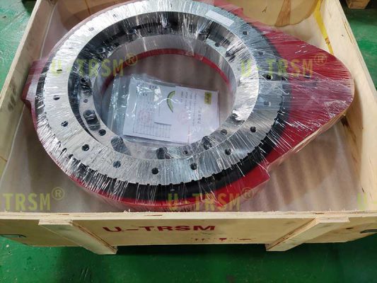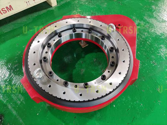 S-III-O-0510 竖直支撑齿轮式回转驱动使用在工业自动化领域,水平安装使用,但是固定回转驱动的螺栓不能在回转驱动底部,只能在回转驱动侧面,客户通过壳体侧面的螺栓孔固定回转驱动,回转驱动外圈带动设备的旋转部分旋转。使用环境多粉尘,要求回转驱动具有防尘性能。